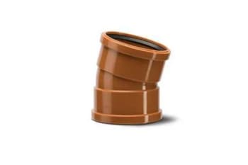 110mm double socket bend for underground drainage. Push-fit sockets connect to plain-ended pipes at both ends. (15°) angle for slight alignment adjustments over short pipe runs.